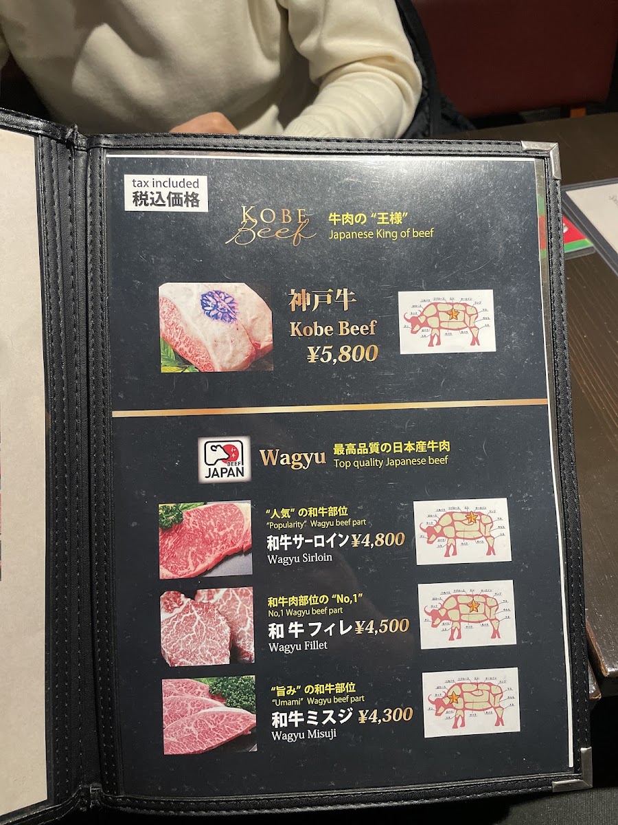 A meat dish prepared by using Wagyu sirloin (meat from the back to the loin).