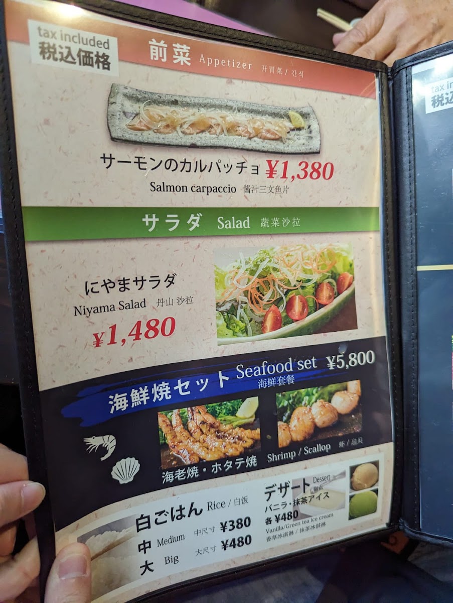 Niyama Kiyamachi offers a refined and customizable dining experience with a variety of set menu options. Guests can choose from three distinct courses: the ¥15,800, ¥21,000, and ¥23,200 options, each featuring five expertly curated dishes. A standout in these courses is the A5 Rank Wagyu Sirloin, a luxurious cut of beef that exemplifies the restaurant's commitment to top-quality ingredients. The courses also include a selection of appetizers and premium beverages, such as the finely crafted Toko no Tsuki (dry sake) from Gekkeikan, founded in 1637, and the sweet and savory Fukuwō Daiginjo Junmai Ginrei from Kitagawa Honke, established in 1657. For those who prefer something more refreshing, the restaurant serves "Dry" Draft Beer, known for its sharp and clean finish. This unique combination of premium meat, high-quality sake, and exceptional service makes Niyama Kiyamachi a destination for an unforgettable dining experience.
